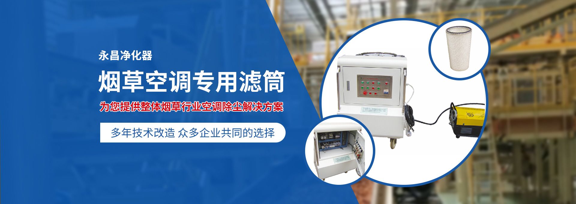 新鄉(xiāng)市永昌凈化器有限公司是生產(chǎn)煙草行業(yè)空調(diào)除塵專用濾筒的企業(yè)。注冊資金1000萬元。已通過ISO9001國際質(zhì)量管理體系認證。對產(chǎn)品有嚴格的管理制度和售后服務(wù)。我公司以誠信、負責(zé)、守信譽、重質(zhì)量的精神所生產(chǎn)的產(chǎn)品,近幾年來在煙草行業(yè)受到廣泛應(yīng)用,并受到用戶的一致好評?! 囊痪啪潘哪暌詠頌闊煆S的空調(diào)設(shè)備服務(wù)。十幾年來,我們不斷走出去請進來學(xué)習(xí)新技術(shù)。定期到用戶那里咨詢情況:互相交流,認真聽取寶貴意見,不斷提高產(chǎn)品質(zhì)量。從經(jīng)濟和安全,方便的角度出發(fā),根據(jù)煙廠濕度大的生產(chǎn)環(huán)境和濾筒收集到的含酸堿、氧化劑的粉塵。在空調(diào)箱工作狀態(tài)下我們頂著巨大的風(fēng)壓危險在箱內(nèi)停留了幾分鐘,認真查看濾筒工作情況,發(fā)現(xiàn)濾筒有并死狀態(tài),造成濾筒不過濾、不過風(fēng)、壓差高的現(xiàn)象。經(jīng)幾十次試驗分析,在標本兼治的原則下,有針對性的解決了這一問題。 我公司針對煙廠制絲、卷接包、混絲間、儲絲房、冷卻床、梗膨化等不同的生產(chǎn)環(huán)境,